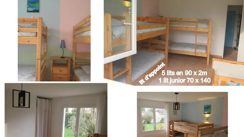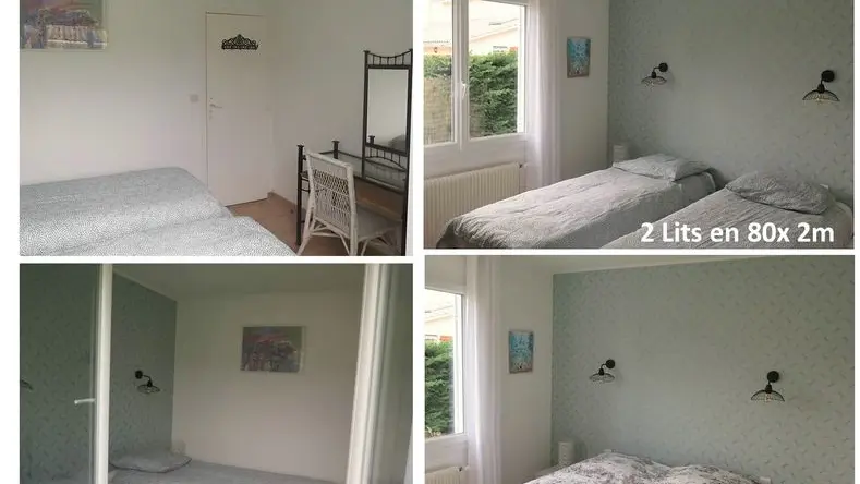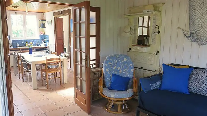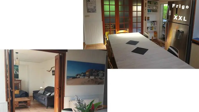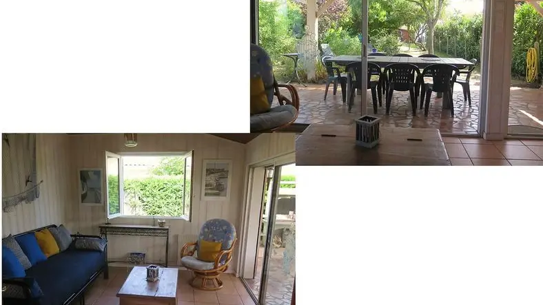 Charming, quiet, single-storey house, fitted kitchen with XXL fridge-freezer. Bathroom and large shower room, 2 WCs. 4 quiet bedrooms including 1 master bedroom, separated by a corridor, veranda (sofa bed 160) opening onto a large Arcachon-style covered wooden terrace, teak table seating 12 (barbecue, gas plancha). Enclosed garden for children, slide, toys, books and games.