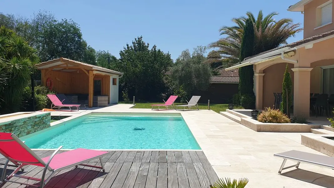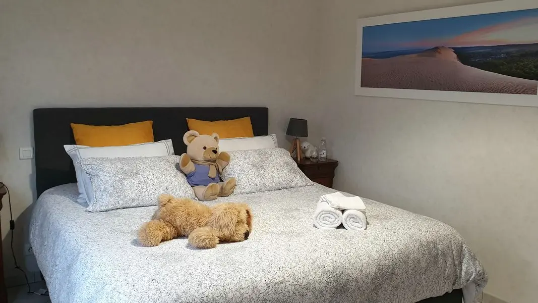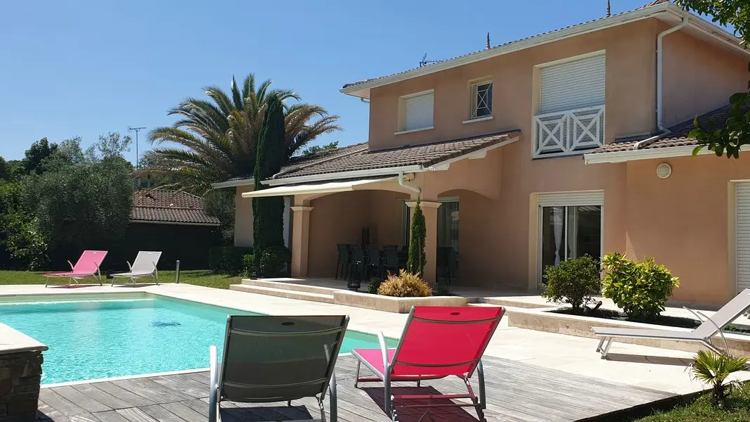 Pleasant 180m² house in a peaceful residential area, set in 1500m² of fully enclosed wooded grounds. Close to La Hume beach, Gujan's 7 ports, Aqualand, Gujan golf course and a host of sporting and cultural activities. 7 km from Arcachon, Dune du Pilat.