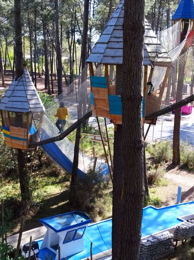 Todo el equipo le da la bienvenida para que descubra la ciudad encaramada: cabañas a 16 m de altura, divertidos circuitos unidos por redes suspendidas y grandes jaulas de juego con globos en los árboles.