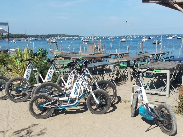 Disfrute de una experiencia única y descubra la bahía de Arcachon desde un ángulo diferente con los scooters eléctricos todo terreno.