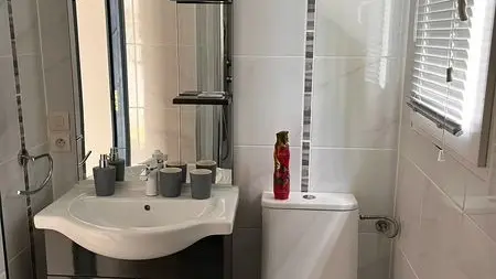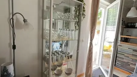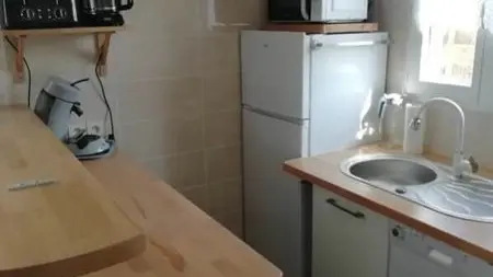 Bienvenido a este apartamento estudio que consta de un vestíbulo de entrada con pequeño guardarropa, una cocina americana, la sala de estar, un cuarto de ducha con WC y un pequeño espacio de almacenamiento en el ático para sus maletas.