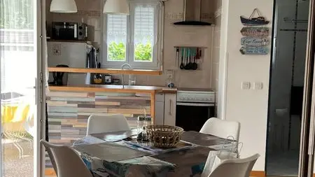 Cocina: placa eléctrica de 4 fuegos, horno, frigorífico-congelador, lavavajillas, cafetera Senseo, tostadora, etc.